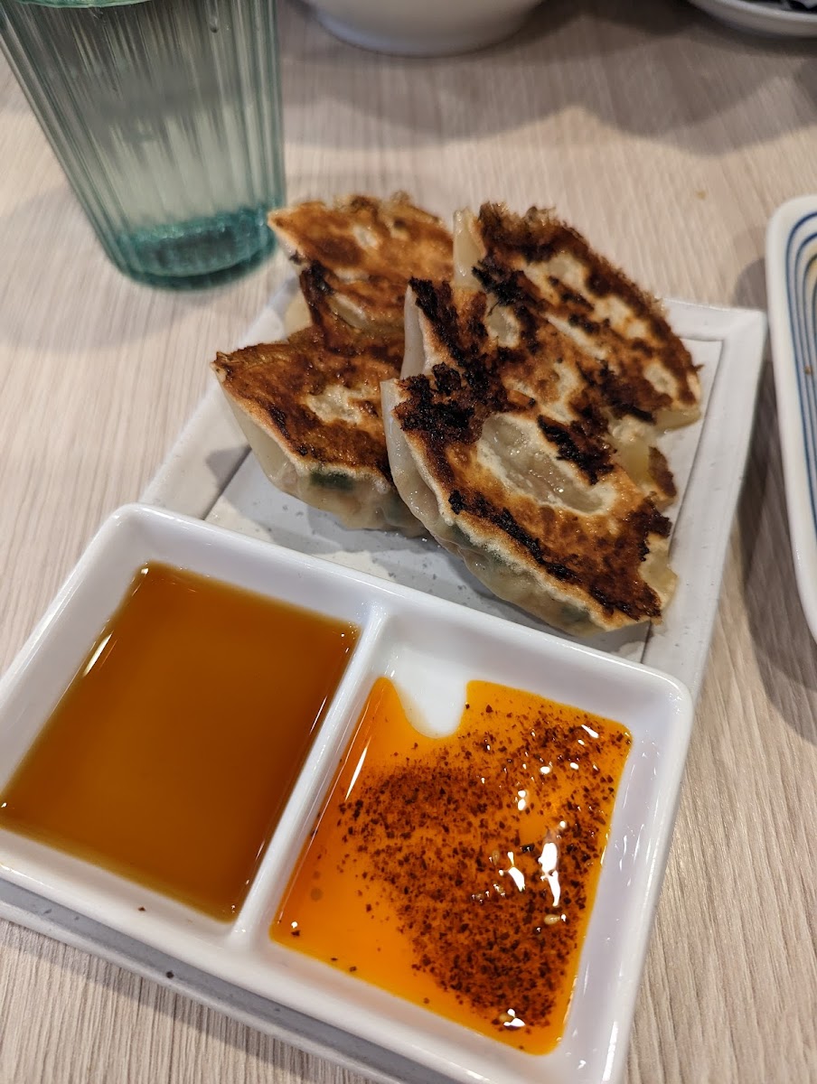 Alongside ramen, the gyoza and karaage stand out as reliable sides. The gyoza come pan-fried or boiled, filled with pork or chicken, while the karaage offers well-seasoned, crispy chicken pieces served with a duo of salts for dipping. These sides add variety to the meal without complicating the ordering process.