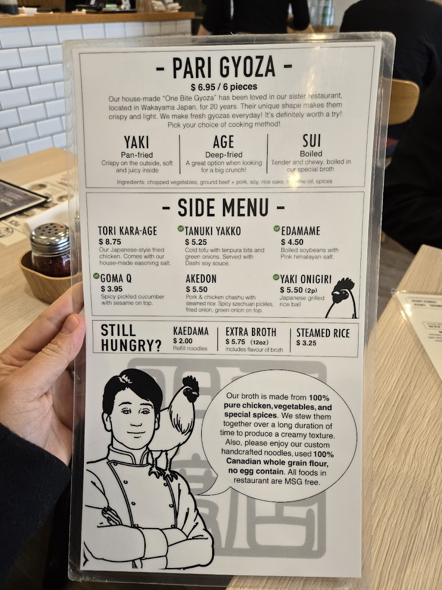 Beyond ramen, the menu includes several types of gyoza, available both pan-fried and boiled, as well as Japanese-style karaage (fried chicken). Curry dishes such as Chicken Katsu Curry, Pork Katsu Curry, Cheese Curry, and Karaage Curry are also available, providing an alternative main option.